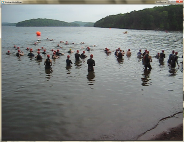 I settled into a pretty good pace and made it around the first two buoys without issue. After rounding the second buoy, the water was pretty choppy. Every time I breathed to my right side, I would get a mouth full of water. Not needing to hydrate this early in the race, I chose to stick to unilateral breathing to my left side until the last buoy.