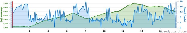 After the downhill, it was back to climbing. At about mile 9.5 (according to my Garmin) is when my problems began. My legs had begun to tire and show signs of me pushing too hard on some of the hills. I was already suspicious during those “stints” as my heart rate skyrocketed to the point I could hear the thump, thump, thump in my noggin. I was passing my share of folks, but I was also getting passed. Each person that passed motivated me to pick up the pace, but each time my heart rate would go through the roof. I knew that going anaerobic would be detrimental and now I was finding out. At about mile 9, my right quad started seizing. I tried to ride it out a bit thinking it was temporary, but it didn’t let go. I tried rubbing it when I could relax it, but with the constant uphill, my chances were far between. I decided to hop off the bike for a sec and give it a rub. It loosened and I quickly hopped back on the bike and resumed my climb.