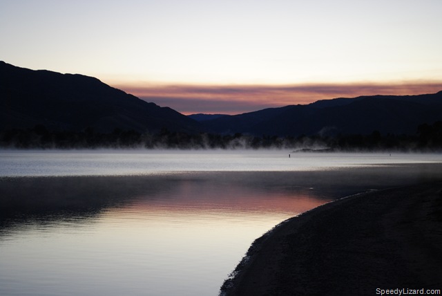 Friday morning I woke up before sunrise thanks to the 2 hour time zone difference. My body clock was still on east coast time. We had a quick brick of all three sports planned for the morning, so I decided to walk down to the reservoir to get some pics of the sun coming up. It also allowed me to scope out the swimming hole.