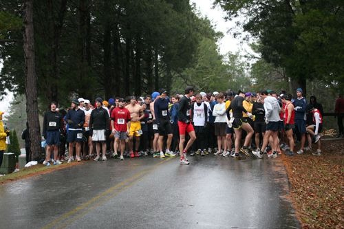 I was also trying to decide whether to wear gloves or not. I had a sweet pair of Mizuno Breath Thermo gloves on. If you haven’t tried these things, you’re missing out. They turn body moisture to heat. I have used them for the past two years and extensively in training. However, I was opting whether to take them on the run or not. The primary reason: feeding. Since there is no grip on the gloves (my only dislike), I’d have a hard time opening GU gels, my primary fuel source. I decided at the last minute to take them off. I wrapped them up in my sweatshirt along with my Sugoi tuke (opted for my white GU cap instead) and dropped them by a tree at the start line.