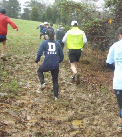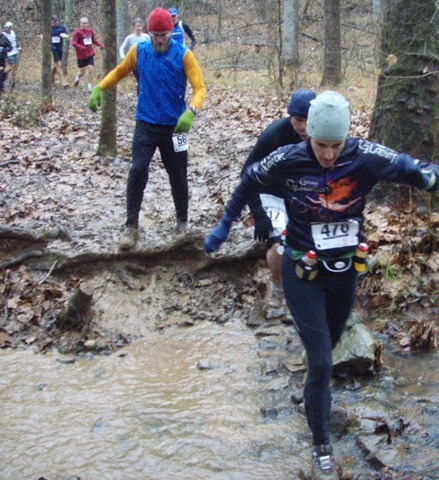 The creek crossings were another challenge. Last year, we tried to avoid getting our shoes completely soaked, so we would try out best to jump over the creeks. At the first creek crossing, I did the same as last year. At the second creek crossing, I had came upon Anthony Corriveau. Since I was right behind him, I was kind of following his line while making sure that it was the one I would have chosen. I got so caught up in following his line that when he stepped right smack-dab in the middle of the creek, so did I. I commented to him about how he had just plowed through the creek and I guess with our shoes already completely soaked, that it didn’t matter. It was definitely faster to just go through the water than it was to slow down to find a good line without breaking your ankle. Besides, you could wash some of the mud off of your shoes in the process.