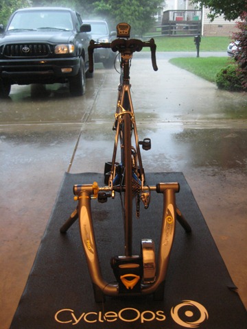 Just me, my bike, the rain and my CycleOps PowerBeam Pro.