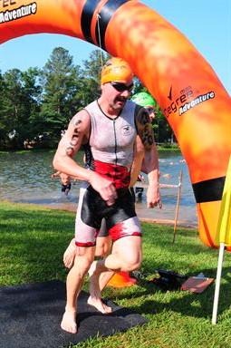 Heading down to the swim area, I hopped into the water about waist deep. The water was like a hot tub. I didn’t even bother doing a warm up swim in fear of overheating. Instead, I decided to lay down on a cold section of grass in the shade while reviewing my game plan in my noggin. “This is going to be a hot swim,” I thought to my self. I think the advertised water temperature was 83 degrees. Alabama-hot.