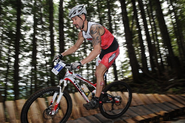 The bike leg was, again, a BLAST. There were some great climbs, technical, rocky drops and rooty downhills. And just to make things even more interesting, they threw in some ladder bridges to boot. One minute, you’re doing a technical, climb, and the next, you’re going around a man-made switchback consisting of a u-shaped ladder bridge with a 10 foot drop on one side. A two-lap course, we were able to hit all of the great terrain twice, totalling around 13 miles.