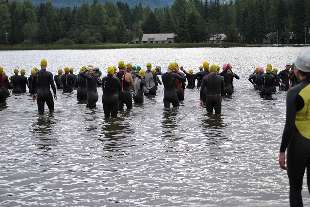 Since I couldn’t take any C02 or Big Air on the plane, Alexia hooked me up with one of her cans of Big Air. When you buy Big Air in the store, it comes in a green can. Genuine Innovations hooked our team up with special cans, blue for the guys and pink for the girls. You guessed it. I rocked one of Alexia’s pink cans! Both Tim and I had tire-related issues on the pre-ride, so the Big Air he was carrying came in quite handy to get us riding quickly. We donned the Profile Design Gold Cell wetsuits and headed for the water.