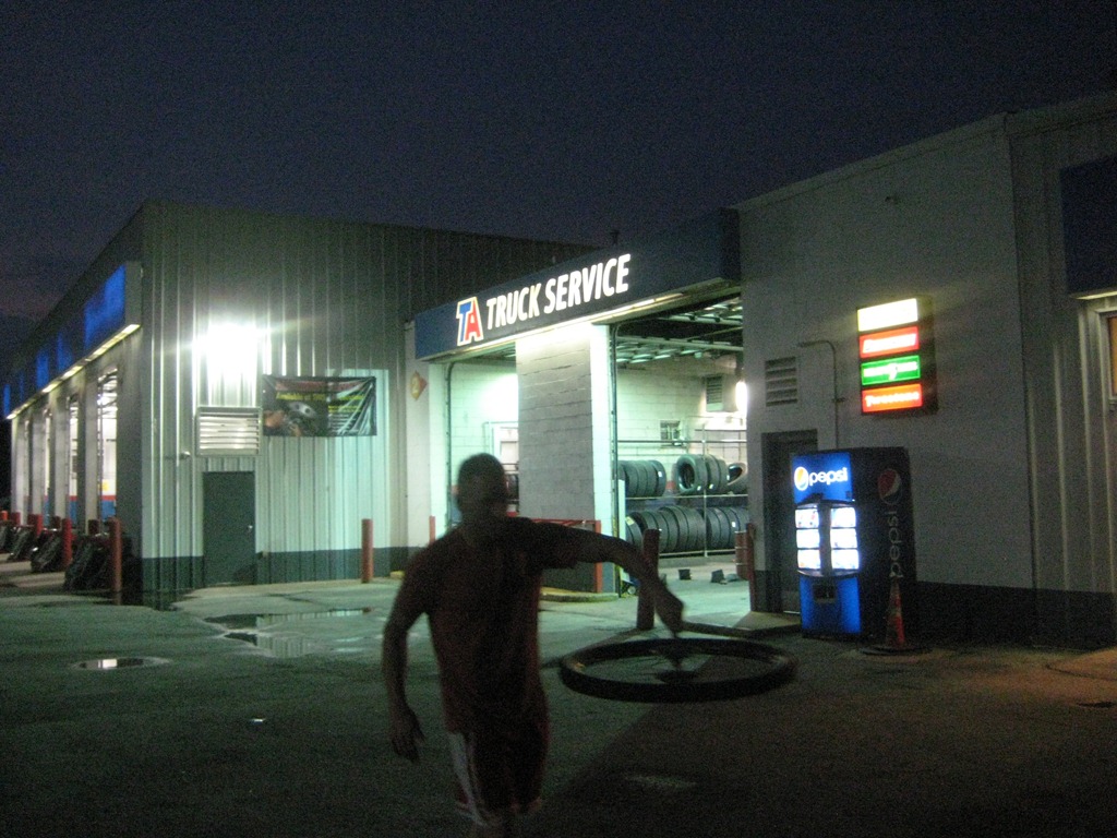 Throughout the rest of the evening, I debated whether I should change the Aspen and put on an Ikon that Dan had as a spare. It was a used tire, but not anymore so than the Aspen I had on there. Since the Ikon we had was a non-UST tire, it can be quite a chore to get the bead seated and the tire sealed without using a compressor. Heck, it can be quite a chore WITH a compressor. All we had was a hand pump. I finally decided to give it a shot by taking it to a local gas station and using the pay-as-you-go compressor. This was a big mistake. Anyone that has used one of those pieces-o-junk knows that you stick a quarter or two (or in our case 6) to get the machine to turn on. Once on, you have limited time to get the chore done before you have to stick in more quarters. The other problem with these things are they don’t actually have a tank. This means that there’s just a little piston in there creating air flow, but without any real stored-up pressure. It’s an air pump, not a compressor. Needless to say that after trying two different pumps at different gas stations, I still had an un-inflated tire.