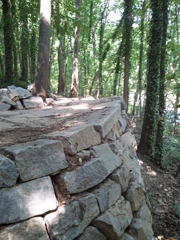On lap two, I crashed twice. Nothing fancy. One crash was due to traffic crashing in front of me. The other was just me clipping a tree and falling over into a patch of poison ivy. Yep. I ended up with the itchies all up and down my left side. Waist, butt, hamstring, and calf. Apparently it soaked right through my already sweat-filled tri suit. The rest of the lap went very smoothly. I transversed stairs, drops, tunnels, narrow bridges, rock wall switchbacks and the like. Ton-o-fun.