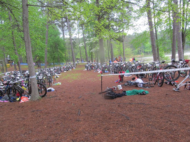 The bike was fast and fun. It had rained a little the morning of the race, so the trails were nice and tacky, but not slippery. The Schwalbe’s were hooking up good, keeping the bike on the trail and the GU Brew Roctane mix was keeping the engine going. I passed a few folks on the bike and managed an ok split.