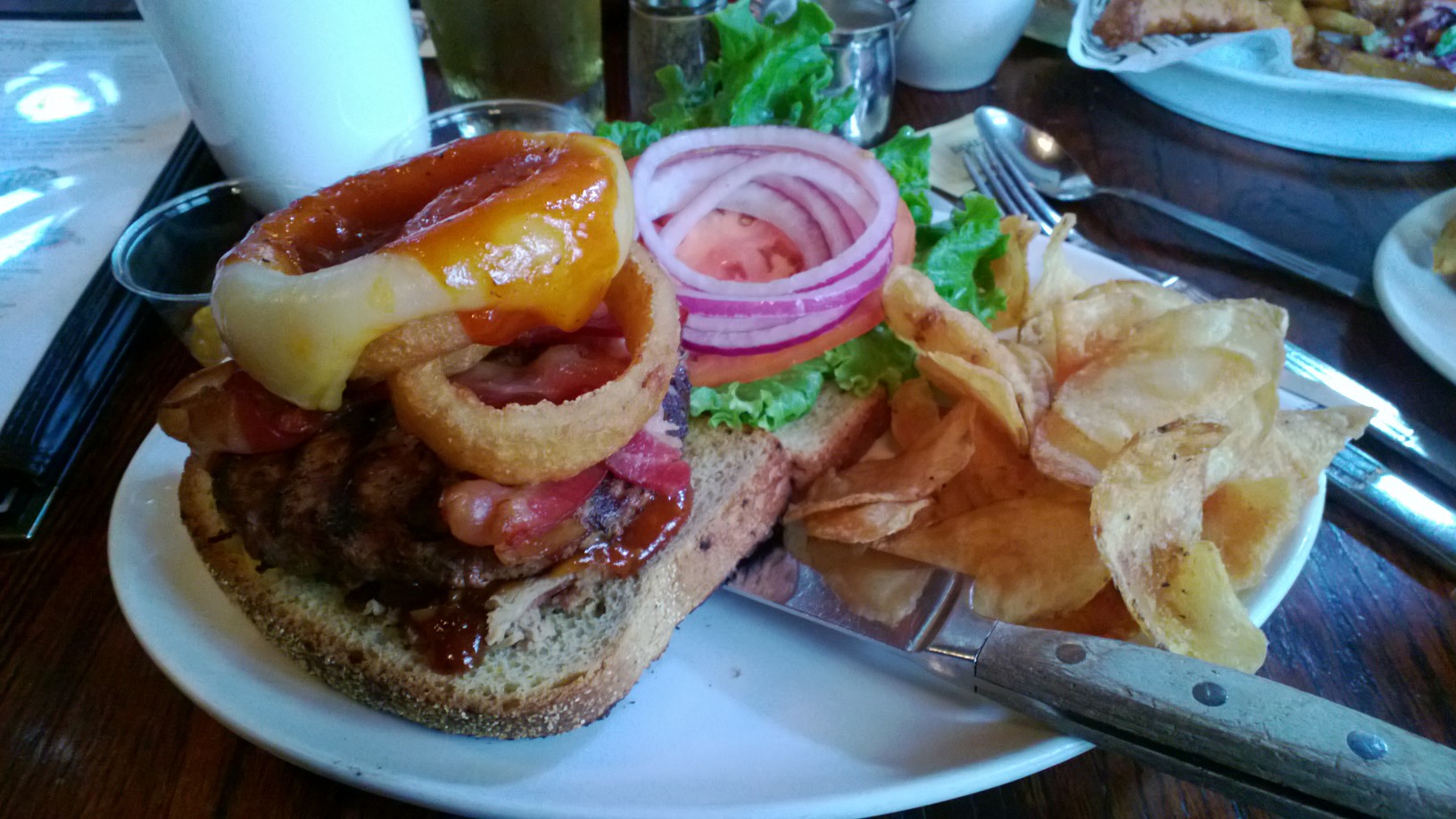 Afterwards, we headed south to the Devil’s Backbone Brewery for a beer and a monstrous “Smokehouse Burger” that was layered with pork, beef and more pork.
