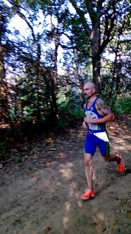 The run was more of the same sort of trails as we had just biked. Most of it was shaded with a couple of open spots where it felt like the surface of the sun. I managed to pass two more guys in my division to put me into first. I couldn’t catch the other 4 guys ahead of me (that weren’t in my division) and I finished up 26 seconds behind 4th place. Final run time: 16:25, 6th fastest.