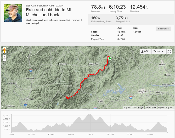 Well, the weatherman was a bit misleading. Again. Last Wednesday and Thursday, it was forecasted for a bee-you-tee-full weekend in the mountains. Since it looked like good weather, we hatched a plan for a Saturday ride of the Blue Ridge Parkway from Linville Falls to Mount Mitchell… and back.