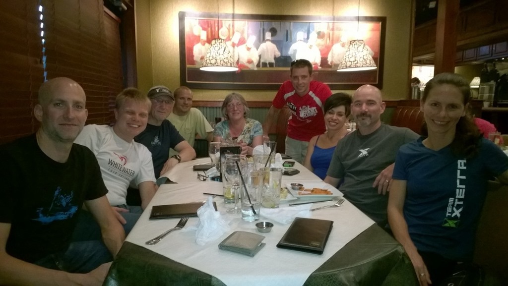 After our pre-ride and some long convos with fellow athletes that were showing up for packet pickup, we hooked up with some of the XTERRA fam for dinner, where many states were represented and talks about shenanigans were had. There were long waits for tables so not everyone ate together. Frank, Charlotte and Jheremy couldn’t join us and they were missed.
