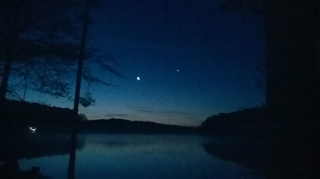 That night, we were spared with only two trains and one plane. The next morning, we showed up at transition during pre-dawn hours where Alba and I took a moment to sit on a picnic table and enjoy a crescent moon along with Venus. At least I think it was Venus.