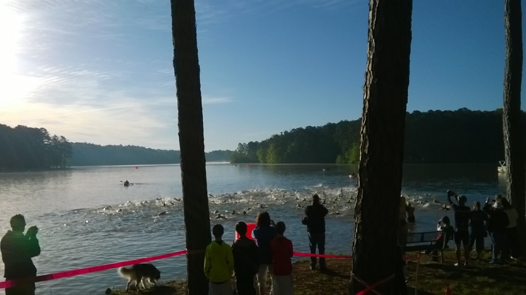 Before we knew it, the race was off and the usual washing machine madness commenced. The swim seemed a bit long this year and everyone’s times seemed to back it up with a +2 minutes or so across the board.