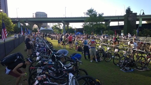 Sure enough, this weekend wouldn’t be much different. Due to the rain leading in, the current in the swim was very strong. We zig-zagged our way across the river having to really compensate for the strong flow. There were folks aiming straight for the buoys without compensating and found themselves having to swim more than necessary with a bit of extra effort as they had to turn upstream. I took an overly compensated swim, staying as far upstream as I could while also aiming upstream when crossing. It seemed to work well as I hit every one of the buoys on the mark. I still felt a little sluggish with my swim, however, having to sight more than I’d like, getting me out of form. Swim: 22:17