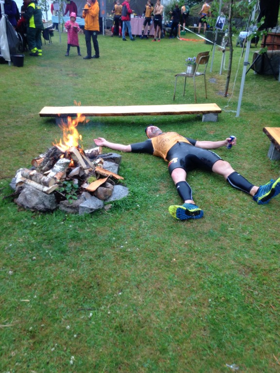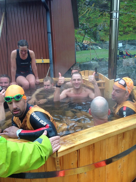 When we got to the end, the race director had another surprise for us (remember, they have a sense of humor). Before we could go across the finish line, we had to, once again jump into the fjord for a short 15 meter swim to the dock.