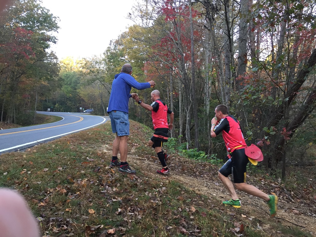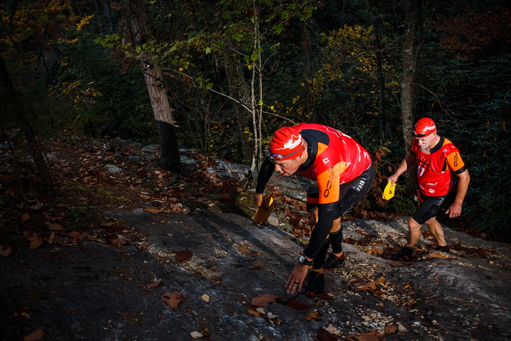 After our two laps of the swim, Caleb and I proceeded our long climb up to the top of Hanging Rock. We made our way up to the campground with 3 teams passing us in the process of us getting our wetsuits situated. After passing the campground, we started up the single track trail that also consisted of an advertised 642 steps. I didn’t count them, but I’ll take their word for it. Many of these steps ranged anywhere from 8-12 inches in height and some were made from railroad ties while most of the others were made from surrounding stones.