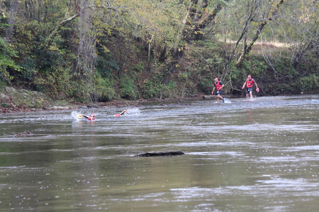It was quite comical to see the two teams duking it out going down the Dan River. I’d be swimming with Caleb 15 feet to my right running. I’d hit a shallow part and start running while he was swimming. The other team, Chad Holderbaum and Matt Mauclair, seemed to be doing the same. No matter which mode we picked, we were all going about the same speed.