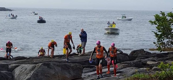 We had completed about 200 meters of a 1400-meter swim, the first leg of 23 swims interspersed with runs in between. In total, we were